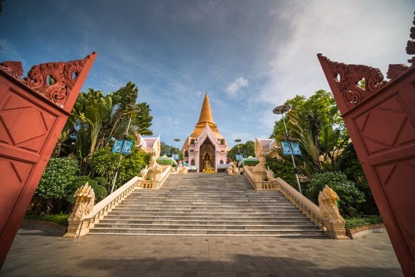 พระสถูปเจดีย์ที่ใหญ่ที่สุดในประเทศไทย สร้างขึ้นในสมัยรัชกาลที่ 4 โดยมีจุดประสงค์เพื่อบูรณะพระเจดีย์เก่าแก่ที่คาดว่ามีอายุมากกว่า 2,000 ปี บริเวณรอบ ๆ มีร้านค้าและร้านอาหารมากมายให้เลือกซื้อเป็นของฝากกัน